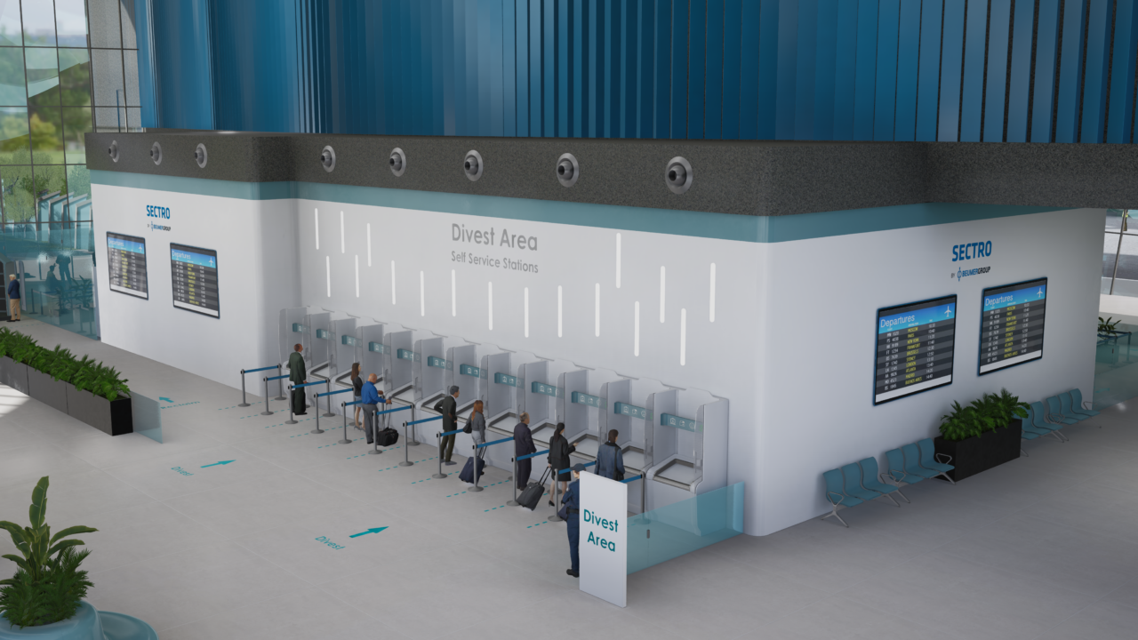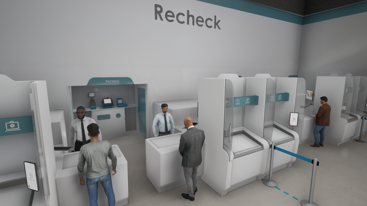 The system works by having self-service stations in the divest area where passengers themselves are responsible for the simple process of placing their baggage in a single large tray and connecting it to their biometrics. While the passenger walks through the body scan monitor, their baggage is being routed to a centralised system, which scans it and sends the images to a central control room. If the baggage is acceptable, then the passenger is directed to a reclaim station where they use their biometric ID to receive their belongings. If the baggage requires further investigation, the passenger is directed to a dedicated recheck area with operators.